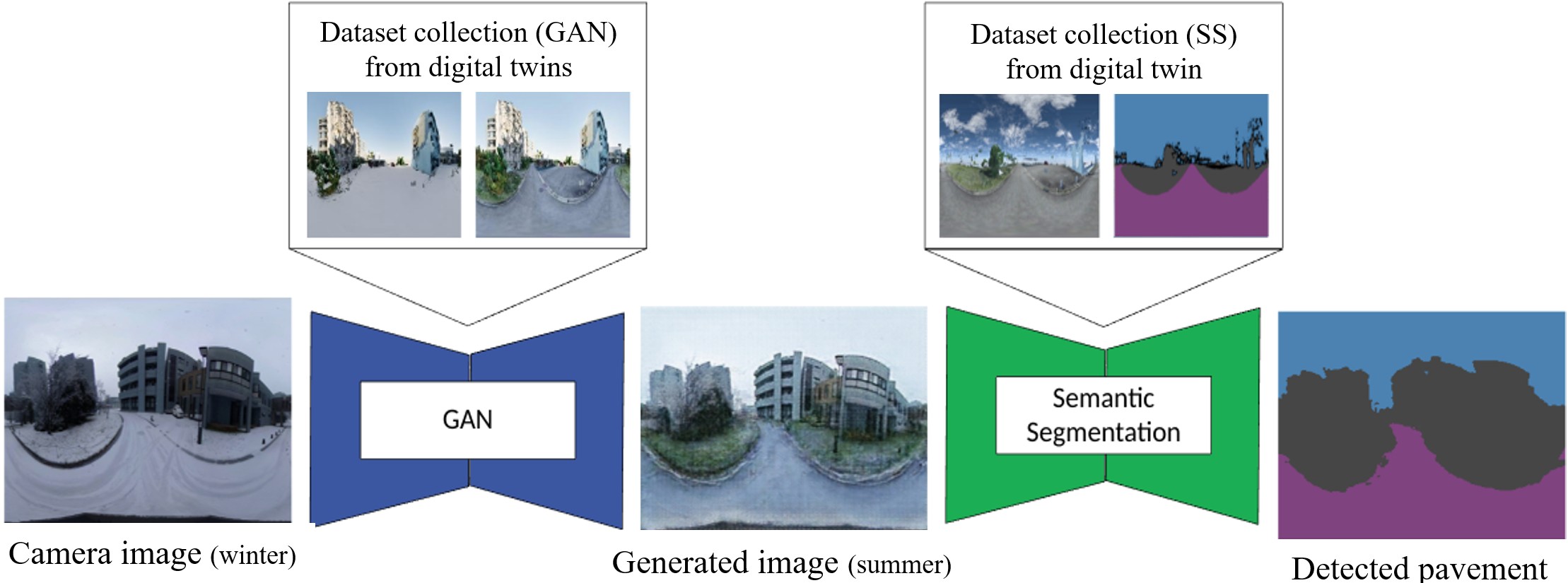 GAN-Based Pavement Road Detection in Snowy Environments Using Digital Twins for Sim2Real